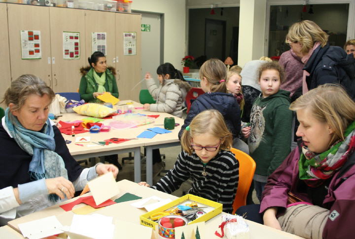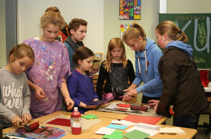Im Textilraum konnten die Grundschüler Weihnachtskarten gestalten, im Kunstraum Linoldrucke anfertigen oder im Biologieraum unter dem Mikroskop Wasserflöhe bewundern. Ständig umlagert war der Musiksaal, in dem die Band-AG ihr Können zum Besten gab und eine Musik-AG der Fünftklässler mit Flöten- und Gitarrenmusik erfreute. In der Sporthalle konnten sich die Grundschüler in einer Abenteuer-Turnlandschaft austoben. In zwei Klassenräumen spielten jüngere Schüler kleine Szenen auf Englisch und Französisch und demonstrierten so eindrucksvoll, was sie bisher im Fremdsprachenunterricht gelernt hatten.
