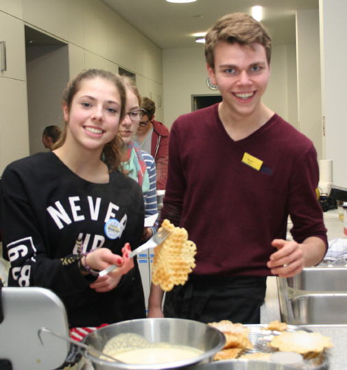 Die neue Mensa war als Cafeteria eingerichtet. So konnten sich die Besucher mit selbst gebackenen Waffeln, Pizzen und anderen Leckereien zwischendurch stärken, die vielfältigen Eindrücke verarbeiten und mit anderen Eltern Erfahrungen austauschen.